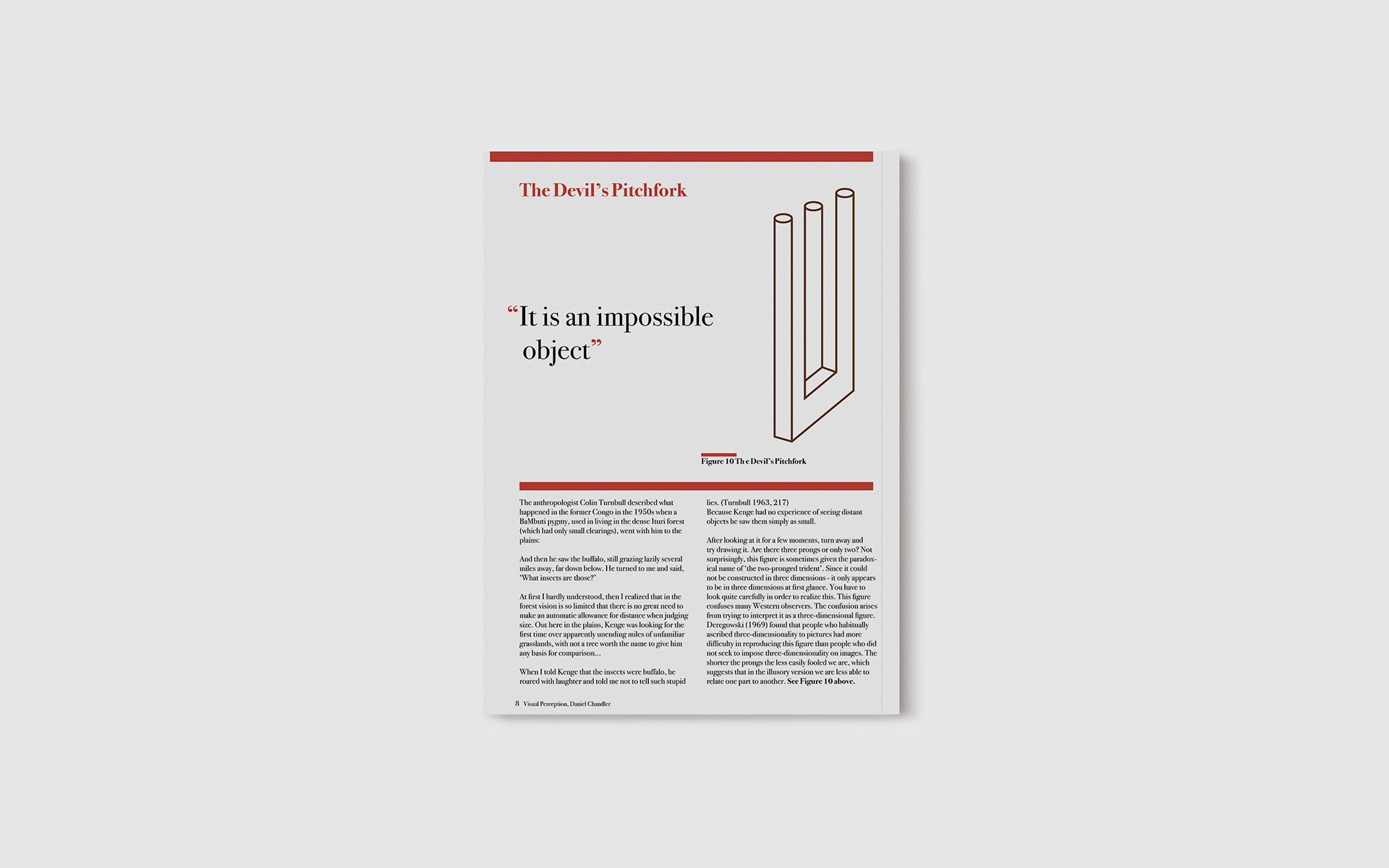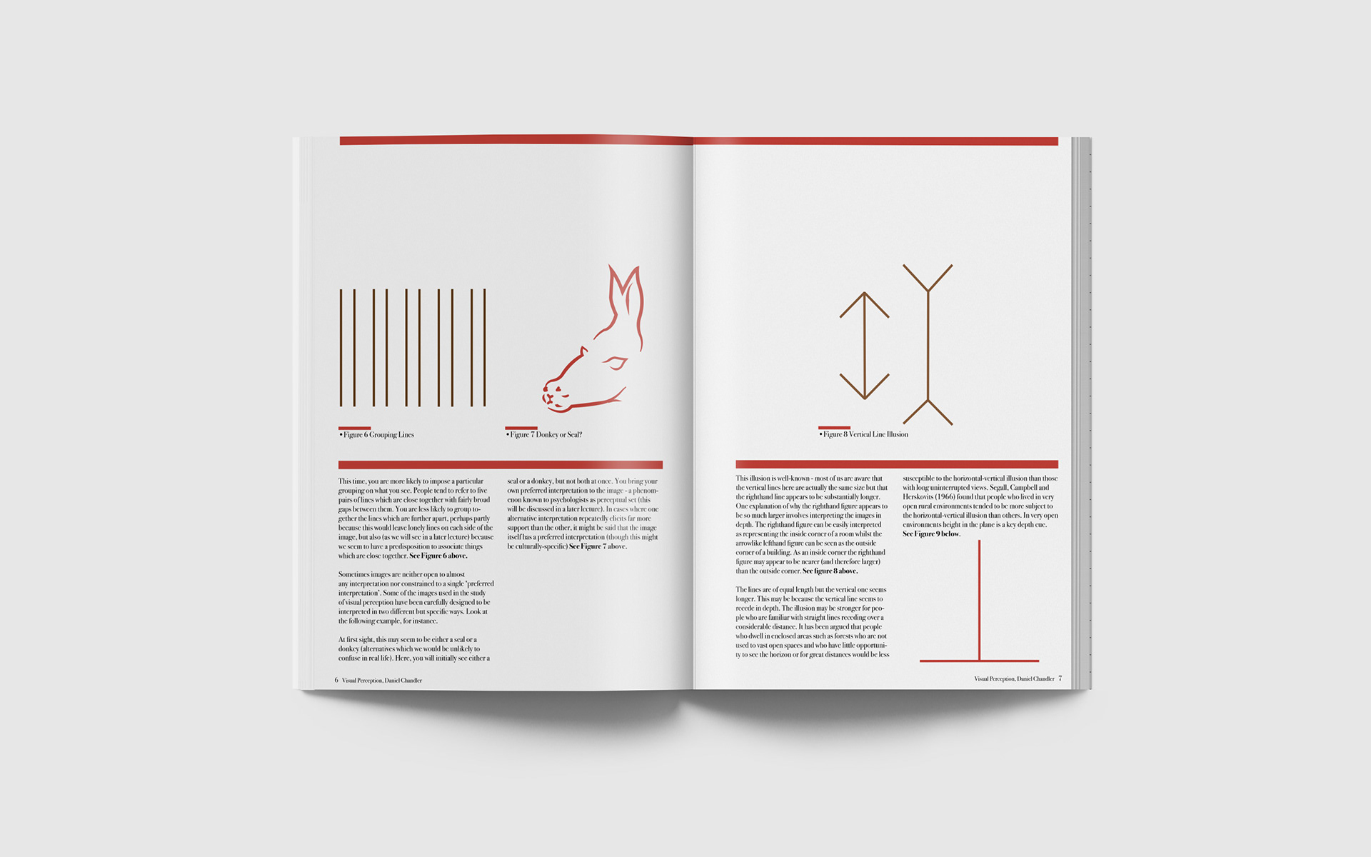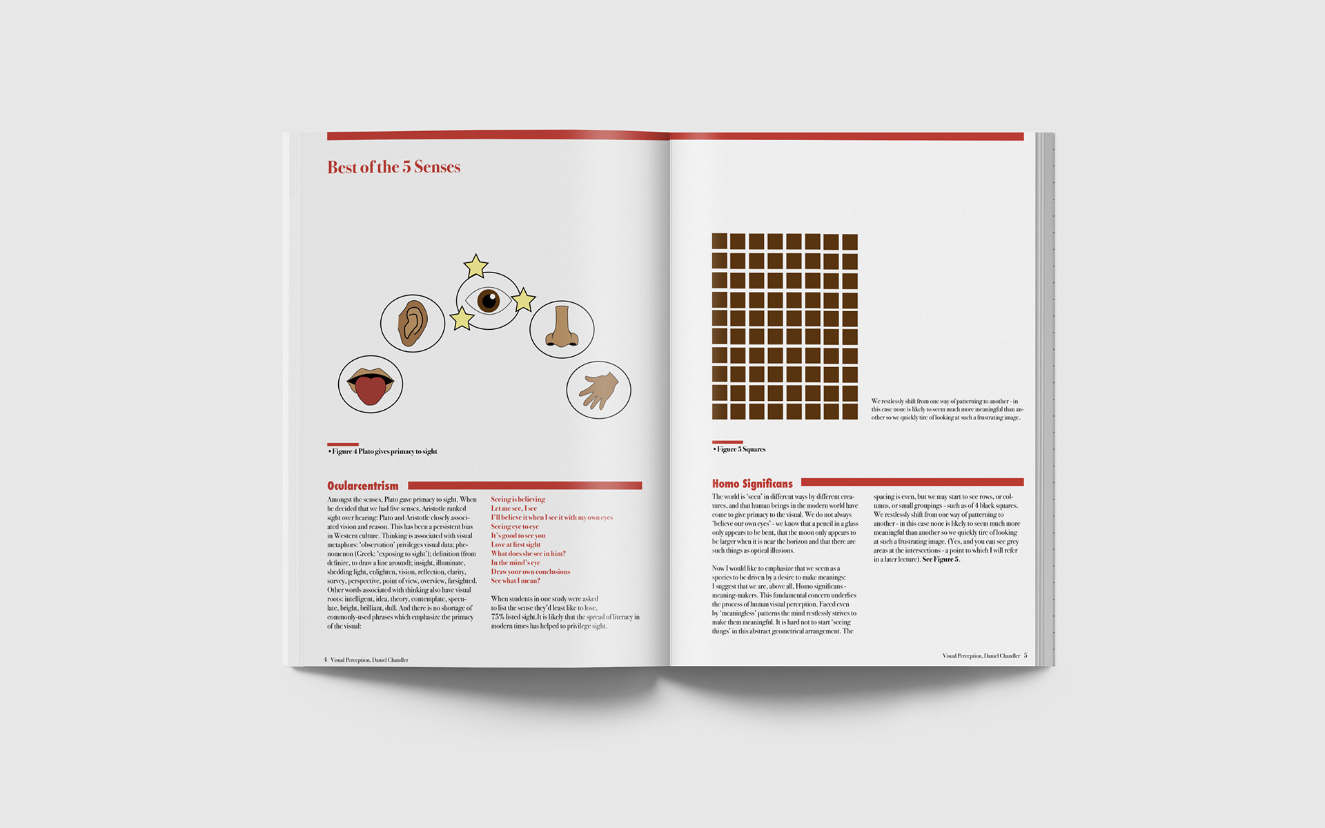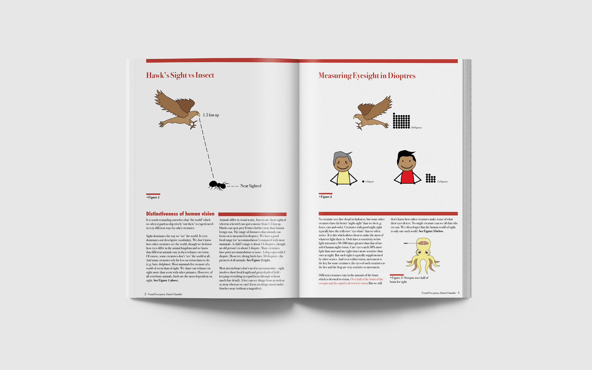 This is the Visual Perception project in which we the text Visual Perception by Daniel Chandler was taken and designed into spreads. I also created infographics to go with the spreads as well.